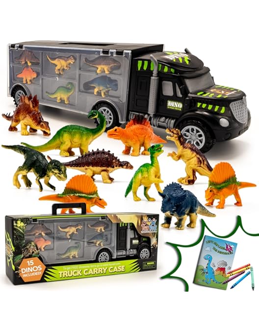 Amazon Com Cute Stone 34 In 1 Dinosaurs Truck Dino Transport Car Carrier Truck Toy With 12 Mini Dinosaur Figures And 4 Cars Dino Park Toy Birthday Gift For 3 Year Old Boys